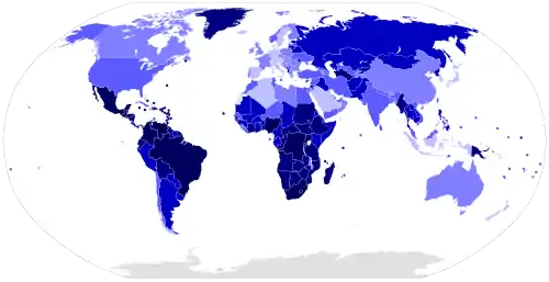 Un estudio realizado por la Declaración de Ginebra sobre Violencia Armada y Desarrollo[8] estima que en 2004 hubo aproximadamente 490.000 homicidios intencionales. El estudio estima que en 2004 la tasa global fue de 7,6 homicidios intencionales por cada 100 000 habitantes.[9] La ONUDD (Oficina de Naciones Unidas contra la Droga y el Delito) hizo un estudio similar. Presumió que en el año 2010 hubo 468.000 homicidios intencionales. Esto correspondería a una tasa de 6,9 en todo el mundo.[10]
