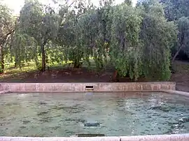 1970 | Jardines de Mossèn Cinto Verdaguer | 4,30 ha | C/ de los Naranjos, 1-5 (Sants-Montjuic) | Se encuentran en la montaña de Montjuic, en la zona comprendida entre el funicular de Montjuic y los Jardines de Joan Brossa, donde antiguamente había una cantera, situada a los pies del Castillo de Montjuic. El parque fue diseñado por Joaquim Maria Casamor, y dedicado al poeta catalán Jacinto Verdaguer, en consonancia con otros jardines de la zona de Montjuic dedicados a poetas. El jardín está especializado en plantas acuáticas, bulbosas y rizomatosas, por lo que está clasificado como parque temático. En el recinto del parque se hallan varias esculturas, como Maternidad, de Sebastià Badia (1970), y Joven de los lirios. Homenaje a Jacinto Verdaguer, de Ramon Sabí (1970).[80] | ![]() |