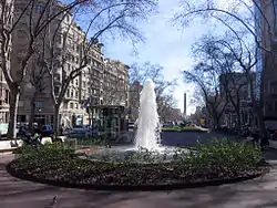 1929 | Jardines de Salvador Espriu | 0,32 ha | Paseo de Gracia, 118 (Gracia) | Son unos populares jardines conocidos anteriormente como Jardinets de Gràcia, hasta que fueron dedicados a Salvador Espriu en 1991, en recuerdo de que el poeta vivía frente a ellos, en el número 118 del Paseo de Gracia. Fueron realizados en 1929 por Nicolás María Rubió y Tudurí. Tienen forma rectangular, y su parte central está ocupada por unos largos parterres de césped, bordeados de una veintena de plátanos dispuestos en hilera. En su parte superior hay una fuente con surtidores de agua. En su espacio se encuentran varias obras de arte público: El Ampurdán. Nueva oda a Barcelona (1961), de Ernest Maragall i Noble; La Lectura. A Pompeu Fabra (1948), de Josep Clarà; y Surco. A Salvador Espriu (2014), de Frederic Amat.[97] | ![]() |