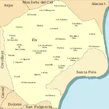 Desde tiempos de la Reconquista por parte del Rey Jaime I, el término municipal de Elche se divide en partidas rurales, sus límites y número han ido variando con el paso de los años. Actualmente, el Campo de Elche se divide en treinta partidas, éstas a su vez se dividen en polígonos numerados que ayudan a situar las parcelas y viviendas de sus habitantes. Algunas de las partidas contienen un núcleo urbano principal al que se le llama pedanía, otras, por el contrario, solamente disponen de urbanizaciones o asentamientos mucho menos poblados.