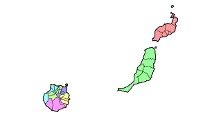 Canarias tiene ochenta y ocho municipios,[7] cincuenta y cuatro en la provincia de Santa Cruz de Tenerife[8] y treinta y cuatro en la de Las Palmas.[9] De esta manera, catorce son de La Palma, tres de El Hierro, seis de La Gomera, treinta y uno de Tenerife, veintiuno de Gran Canaria, seis de Fuerteventura y siete de Lanzarote.[10]