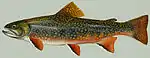 Salvelinus fontinalis *[2] | Salvelino, Trucha de arroyo | NA | L: 20-30 cm. Especie norteamericana, establecida en los tramos altos de montaña. | ![]() |