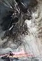 - Fasolt el gigante, agachándose para comprobar que no hayan grietas en la pila de oro.