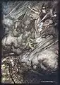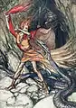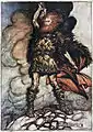 - Fafner el gigante (izquierda), durante el secuestro de Freia.