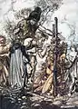 - Alberich, látigo en mano, esclavizando a los nibelungos.