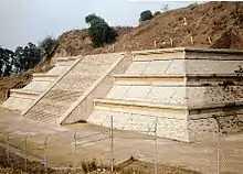 México | Santa Cecilia Acatitlán | Azteca | En 1962 el arquitecto y arqueólogo Eduardo Pareyon Moreno reconstruyó y reforzó la base de la pirámide, además de recronstruir el templo que la corona. | ![]() | ||||||