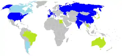 País | En servicio | En reserva | Dados de baja | En construcción | Nunca completados | Total† |