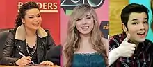 ![]() Los tres actores principales de la serie iCarly, Miranda Cosgrove, Jennette McCurdy y Nathan Kress. | |||