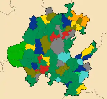 - Después de las elecciones estatales, en los municipios de Santiago Tulantepec de Lugo Guerrero y Xochicoatlán se declaró nula la elección.[5][6] La LXI Legislatura del Congreso de Hidalgo designó un Concejo Municipal Interino en cada municipio, ante la falta de un Alcalde electo; estos concejos entraron en funciones el 16 de enero de 2012 y terminaron el 1 de mayo de 2012.[7][8] Las elecciones extraordinarias fueron realizadas el 18 de marzo de 2012, y el candidato electo inició su mandato el 2 de mayo de 2012.[9][10]