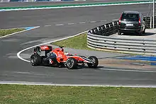 El VR-01 regresando a boxes después de perder el alerón delantero.