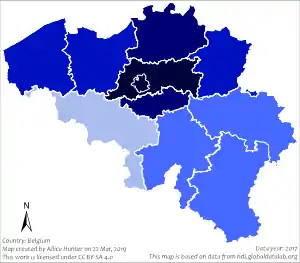 Clasificación de las provincias de Bélgica por índice de desarrollo humano (datos del 2018).[1]