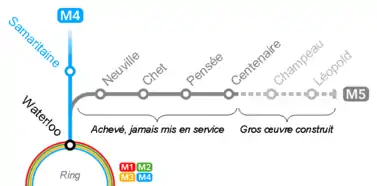 Al igual que la "antena" a Mont-sur-Marchiene, estaba prevista en el plan inicial de desarrollo del metro pero, tras la federalización, se redujo el presupuesto y se optó por suprimirla. Así hubiera sido su recorrido: