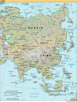 Asia es el continente más grande de la Tierra y el de mayor población. Su superficie es de 44.541.138 km² y en él habitan más de 4.000 millones de personas, que representa más de la mitad de la población mundial. Se encuentra en el hemisferio oriental y, casi en su totalidad, se ubica en el hemisferio norte.