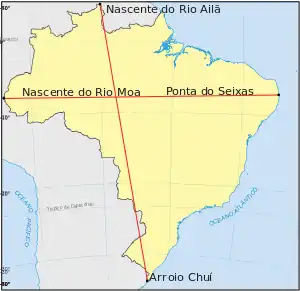 - Punto más oriental: Punta de Seixas, Paraíba (07°09′28″S 034°47′38″O)