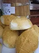 De forma esférica de aproximadamente 6 centímetros de diámetro, suele recubrirse con especias como zataar o pimienta aleppo. |