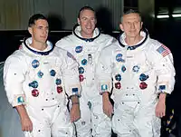 La tripulación del Apolo 10 (Thomas Stafford, John W. Young y Eugene Cernan) alcanzó la mayor velocidad respecto a la Tierra jamás alcanzada por el ser humano: 39,897 kilómetros por hora (11,082 kilómetros por segundo o 24,791 millas por hora, aproximadamente 32 veces la velocidad del sonido y 0. 0037% de la velocidad de la luz).[15] El récord se estableció el 26 de mayo de 1969.[15]