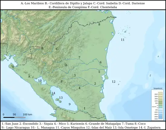 - «Longitud en kilómetros de los principales ríos según tipo de vertiente - Compendio Estadístico de Nicaragua, 2000-2002» (PDF). Instituto Nacional de Estadísticas, Inide. pp. 11-12.
