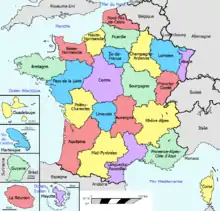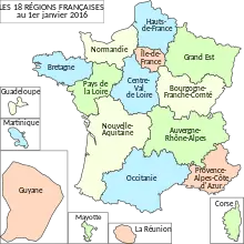 Mapa de las regiones y territorios de Francia anteriores a 2016.