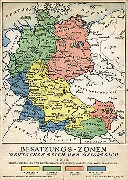 En amarillo, las zonas de ocupación estadounidense en Alemania y Austria.