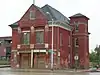 Jefferson Corridor | Esta estructura de dos pisos y medio sigue siendo una de las mejores casas románicas richardsonianas de Detroit. Construida en ladrillo oscuro y piedra marrón, tiene un techo macizo a dos aguas y una torre con techo cónico. La fachada contiene múltiples tratamientos de superficies y ventanas, incluidos elementos escultóricos de Julius Melchers alrededor de la entrada. |
