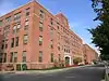 West side | Warren Motor Car Company was founded in 1909 by real estate magnate Homer Warren. Warren hired the Detroit architectural firm of Rogers and MacFarlane to design a series of building to fill the site. These buildings were constructed and occupied in 1910. However, Warren Motor Car went bankrupt in 1913, and a series of automobile companies occupied the buildings, including Lincoln Motor Company and the Ford Motor Company. Grocery firms occupied the buildings after WWII, and as of 2019, the Holden facility housed a recycling center, an artist studio, and a public art gallery. |