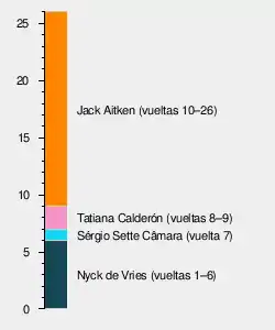 - Tatiana Calderón salió desde el pit lane, luego de que su monoplaza se quedara atascado en la grilla de partida al comenzar la vuelta de formación.[17]