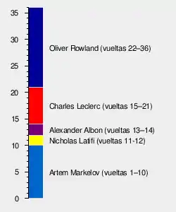- Sérgio Sette Câmara y Sean Gelael fueron penalizados con 10 segundos por haber abierto el DRS antes de haber completado sus primeras dos vueltas.[6]