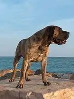 Perro | Es un perro de tamaño medio, cabeza ancha, pelo corto y color atigrado de marrón a negro. Antiguamente se utilizaba para guardar y trabajar con el ganado.[36] Es de aspecto rústico y bien proporcionado, los machos miden, sin tomar en cuenta la cabeza, entre 61 y 66 cm de altura y las hembras entre 57 y 62 cm, y pesan de 45 a 57 kg los machos, y de 40 a 50 kg las hembras. Poseen una cabeza fuerte, de líneas cuadradas y cráneo ancho. Los labios superiores esconden los inferiores, la nariz es oscura y los dientes poderosos y bien encajados. | 1991 | ![]() |
