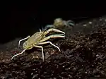 Crustáceo | Es un cangrejo endémico de la isla de Lanzarote. Sólo habita en algunos jameos, como los famosos Jameos del Agua, por lo que se encuentra en grave peligro de extinción.[43] De pequeño tamaño, presenta una coloración blancuzca.[44] Es un crustáceo pequeño, su caparazón no llega a 1 cm de largo y en total puede llegar a medir entre 2 y 3 cm. Es una especie única en el mundo y presenta características muy especiales, como su color, totalmente blanco, ya que es albino. Otra peculiaridad es que, como su nombre indica, tiene el sentido de la vista muy debilitado y por el contrario el oído muy desarrollado. | 1991 | ![]() |