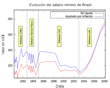 La nueva constitución de Brasil de 1988 establece en el capítulo II (Derechos sociales), artículo 6, el derecho de todo trabajador a un salario mínimo. La cláusula IV define el valor del salario como "capaz de atender a sus (del trabajador) necesidades vitales básicas y a las de su familia como vivienda, alimentación, educación, salud, ocio, vestuario, higiene, transporte y providencia social". Esta cláusula también garantiza reajustes periódicos a fin de preservar el poder adquisitivo del trabajador.