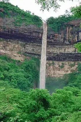 ![]() | 35 | Cachoeira Boca da Onça | 156 | Serra da Bodoquena, Bodoquena | ![]() | Localizada en el cañón del río Salobra, en una hacienda del mismo nombre, en el municipio de Bodoquena, es la más alta del estado de Mato Grosso do Sul. Tiene aguas cristalinas y cae en un río de aguas verdes, el río Salobra, utilizado por ecoturistas para la flotación. En el cañón, también es posible la práctica de rapel. |