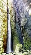![]() | 32 | Cachoeira do Itiquira | 168 | Formosa | ![]() | Está dentro de uma área protegida: o Parque Municipal de Itiquira. Forma-se, em sua base, um poço, porém, não é permitido o banho, pois a força da queda d'água é muito forte. Depois do salto, o rio forma uma sequência de cachoeiras, corredeiras e poços, cobertos por uma densa floresta. |