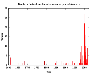 En agosto de 2020, se habían descubierto 309 lunas de asteroides y 119 lunas transneptunianas (incluidas las de Plutón y Haumea).[11]