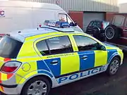 Vehículo policial V-3 Señaliza un vehículo de esta clase en servicio no urgente. Estará constituida por una rotulación, reflectante o no, en los costados del vehículo, que incorpora la denominación del cuerpo policial y su imagen corporativa. |