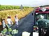 Vehículos para obras o servicios, tractores agrícolas, maquinaria agrícola automotriz, demás vehículos especiales, transportes especiales y columnas militares V-2 Indica que se trata de un vehículo de esta clase, en servicio, o de un transporte especial o columna militar. Utilizarán una señal luminosa, denominada rotariva, cuando interrumpan u obstaculicen la circulación. |