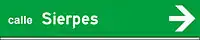 Señal de destino hacia una vía ciclista o senda ciclable S-322 Indica la existencia en la dirección apuntada por la flecha de una vía ciclista o senda ciclable. Las cifras escritas dentro de la señal indican la distancia en kilómetros. |