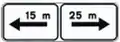 Extensión de la prohibición, a ambos lados S-830 Colocada bajo una señal de prohibición, indica las distancias en que se aplica esta prohibición en cada sentido indicado por las flechas. |