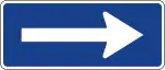 Calzada de sentido único S-11 Indica que, en la calzada que se prolonga en la dirección de la flecha, los vehículos deben circular en el sentido indicado por esta, y que está prohibida la circulación en sentido contrario. |