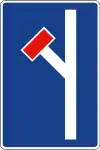Final de carril destinado a la circulación S-52b Preseñaliza, en una calzada de doble sentido de circulación, el carril que va a cesar de ser utilizable, e indica el cambio de carril preciso. |