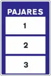 Estas señales son cuadradas o rectangulares, de color azul con los elementos y el borde en blanco.