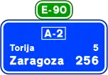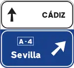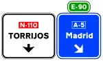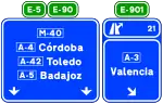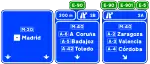 Señales de destino de salida inmediata hacia autopista o autovía S-342 Indica el lugar de salida de una autopista o autovía hacia una autopista o autovía. La cifra indica el número del enlace. |