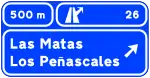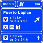 Lugares de interés por autopista o autovía S-321 Indica lugares de interés que no son poblaciones situados en un itinerario constituido por una autopista o autovía. Las cifras inscritas dentro de la señal indican la distancia en kilómetros. |