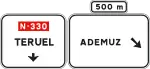 Señales de destino de salida inmediata hacia carretera convencional S-341 Indica el lugar de salida de una autopista o autovía hacia una carretera convencional. La cifra indica el número del enlace. |