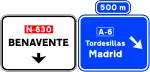 Confirmación de poblaciones en un itinerario por autovía o autopista S-602 Indica, en autopista o autovía, los nombres y distancias en kilómetros a las poblaciones expresadas. |