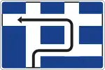 Bifurcación hacia la izquierda en calzada de cuatro carriles S-62a Indica, en una calzada de cuatro carriles de circulación en el mismo sentido, que en el próximo tramo el carril de la izquierda se bifurcará hacia ese mismo lado. |