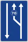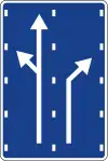Doble bifurcación en calzada de cuatro carriles S-62c Indica, en una calzada con cuatro carriles de circulación en el mismo sentido, que en el próximo tramo los dos carriles de la derecha se bifurcarán hacia ese mismo lado. |