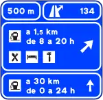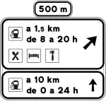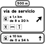 Las siguientes señales indican la ubicación de un servicio en carretera.
