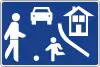 Zona residencial S-28 Indica las zonas de circulación especialmente acondicionadas que están destinadas en primer lugar a los peatones y en las que se aplican las normas especiales de circulación siguientes: la velocidad máxima de los vehículos está fijada en 20 kilómetros por hora y los conductores deben conceder prioridad a los peatones. Los vehículos no pueden estacionarse más que en los lugares designados por señales o por marcas. Los peatones pueden utilizar toda la zona de circulación. Los juegos y los deportes están autorizados en ella. Los peatones no deben estorbar inútilmente a los conductores de vehículos. |