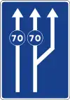 Bifurcación hacia la izquierda en calzada de tres carriles S-61a Indica, en una calzada de tres carriles de circulación en el mismo sentido, que en el próximo tramo el carril de la izquierda se bifurcará hacia ese mismo lado. |