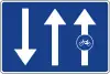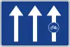 Paso de dos a tres carriles de circulación S-53b Indica, en un tramo con dos carriles en un sentido de circulación, que en el próximo tramo se va a pasar a disponer de tres carriles en el mismo sentido de circulación. |